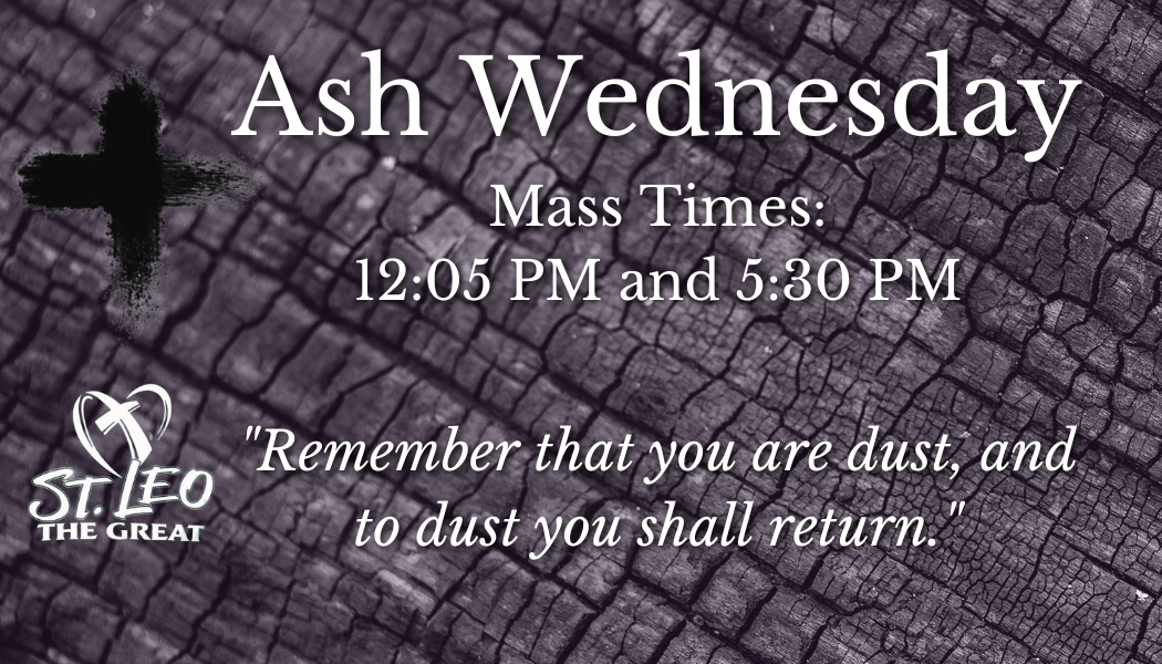 St. Leo's will have Ash Wednesday Mass twice on February 18th. They will be held at 12:00 PM Noon & 5:30 PM.